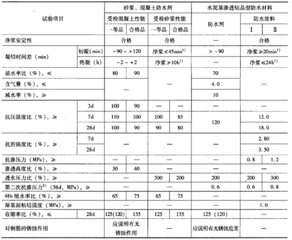 表2-1防水劑技術(shù)指標(biāo)要求