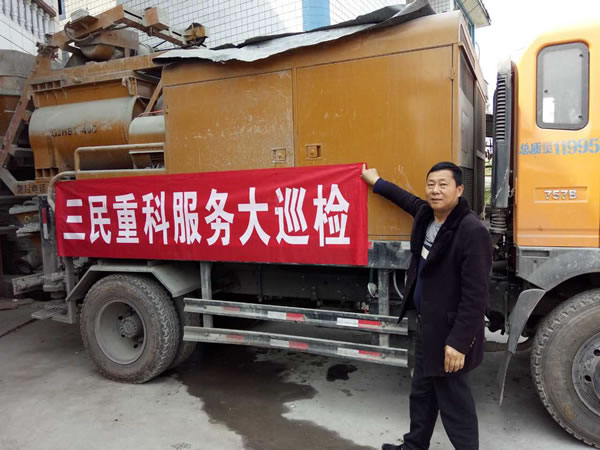 何老板,地道宜賓人,原本就是做工程的,長(zhǎng)期跟著別人做工程讓他對(duì)工程建設(shè)行業(yè)有了很深的了解,看到近幾年對(duì)基建和鄉(xiāng)鎮(zhèn)建設(shè)的支持,他發(fā)現(xiàn)了這其中的商機(jī),于是產(chǎn)生了自己?jiǎn)胃傻南敕?,后?lái)經(jīng)三民老客戶的介紹購(gòu)買了一臺(tái)攪拌車載泵,從此開始了他的工程承包生涯。出來(lái)單干已經(jīng)一年時(shí)間,何老板說(shuō)現(xiàn)在本地工程很多,幾乎兩天就能接到一個(gè)新的工程,生意好到自己自己都沒(méi)想到,有時(shí)候都有點(diǎn)“抱怨”,已經(jīng)連續(xù)三個(gè)月了都沒(méi)休息了,天天都在工地忙活。