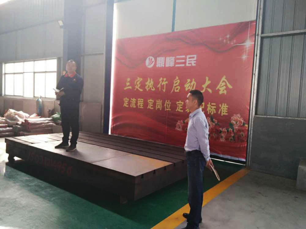 大會(huì)伊始,李總首先發(fā)表致辭,宣布三民重科“三定”正式啟動(dòng)執(zhí)行,并對(duì)“三定”內(nèi)容進(jìn)行了宣導(dǎo)?!岸鞒獭⒍◢徫?、定裝配標(biāo)準(zhǔn)”即“三定”政策試執(zhí)行一個(gè)月以來(lái),切實(shí)有效增強(qiáng)了全員的使命感和責(zé)任感,作為企業(yè)管理基礎(chǔ)性工作中重要的一環(huán),起到了積極作用。李總要求,各職能部門要繼續(xù)嚴(yán)格貫徹執(zhí)行“三定”政策,在原有基礎(chǔ)上發(fā)現(xiàn)問題,改進(jìn)不足,確保高質(zhì)高效的完成生產(chǎn)經(jīng)營(yíng)工作。