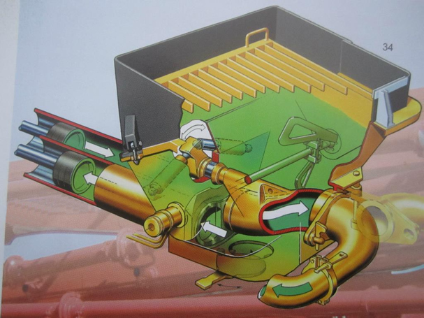 泵送機構由兩只主油缸、水箱、換向裝置、兩只混凝土缸、兩只混凝土活塞、料斗、分配閥(又稱S管)、擺臂、兩只擺動油缸和出料口組成。