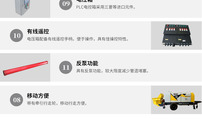 簡介:1、采用先進S管閥換向,出口壓力高,能滿足細石混凝土高層和遠距離輸送 2、主油泵采用優(yōu)質(zhì)恒功率變量柱賽泵,系統(tǒng)壓力高,效能高,運行平衡。