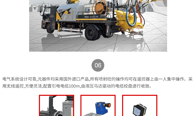 簡(jiǎn)介:混凝土濕噴臺(tái)車是按標(biāo)準(zhǔn)濕噴機(jī)產(chǎn)品的要求設(shè)計(jì)、制造和配置的,屬高端的濕噴機(jī)產(chǎn)品,其功能多樣化,適應(yīng)范圍廣。噴射能力大、作業(yè)效率高、噴射效果好、操控靈活方便、自行能力強(qiáng)。更加適合較大斷面和需要較大噴射砼量以及須要高效率噴射砼的隧道。