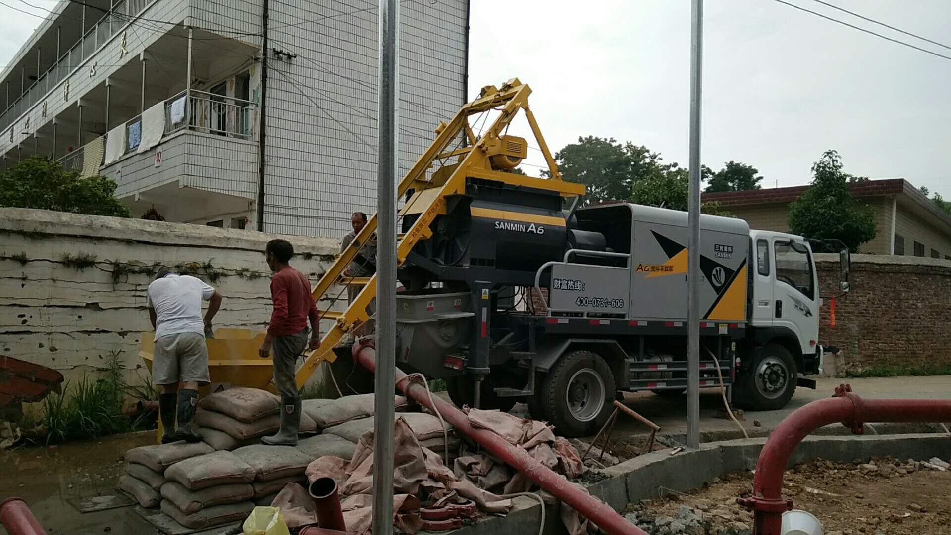 2016年7月,“尼伯特”臺風(fēng)給閩清塔莊鎮(zhèn)帶來特大暴雨洪災(zāi)后,三民重科混凝土泵車之?dāng)嚢柢囕d泵在援建一線參與災(zāi)后重建。