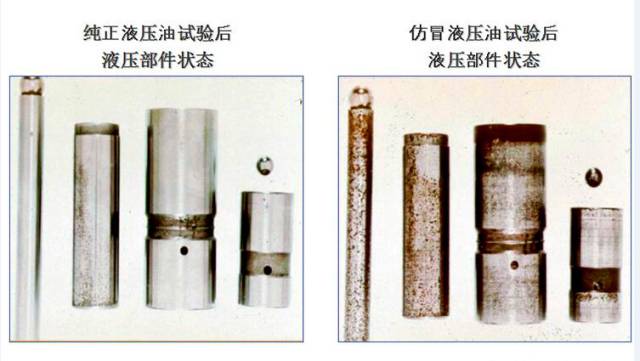 純正液壓油對(duì)液壓部件起到抗氧化,防銹等作用,因此除了通過(guò)油色、粘稠度、耐高溫性特點(diǎn)辨別真?zhèn)?,也可以看液壓油的抗氧化性辨別。