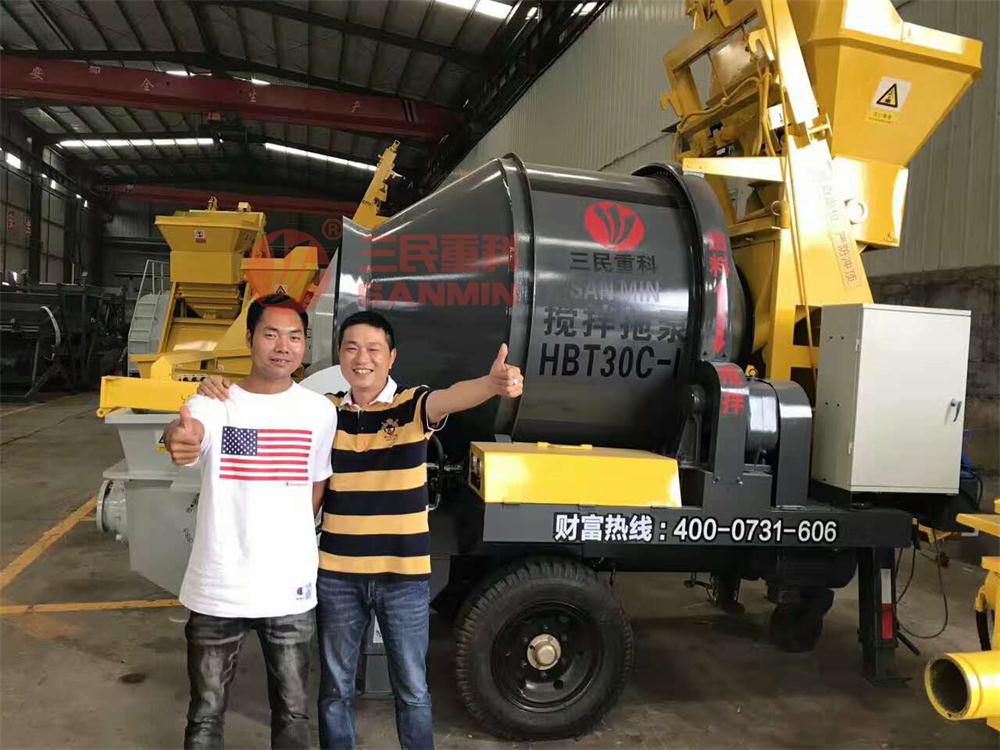 2、若氣溫較低,空運轉(zhuǎn)時間應(yīng)長些,要液壓油的溫度升至15℃以上時才能投料泵送。 3、泵送前應(yīng)向料斗加入10L請水和0.3m3的水泥砂漿,如果管長超過100m,應(yīng)隨步管增長而適當(dāng)增加水和砂漿。 混凝土攪拌拖泵及臂架泵車的使用規(guī)范 4、水泥砂漿注入料斗后,應(yīng)使攪拌軸反轉(zhuǎn)幾周,讓料斗內(nèi)壁得到潤滑,然后再正轉(zhuǎn),使砂漿經(jīng)料斗喉部喂入分配閥箱內(nèi)。開泵時不要把料斗內(nèi)的砂漿全部泵出,應(yīng)保留在料斗的攪拌軸軸線以上,待混凝土加入料斗后再一起泵送。 5、泵送作業(yè)時,料斗中的混凝土平面應(yīng)保持在攪拌軸軸線以上,供料跟不上時要停止泵送。 6、料斗網(wǎng)格上不得堆滿混凝土,要控制供料流量,及時清楚超粒徑的骨料及異物。 7、攪拌軸卡住不轉(zhuǎn)時,要暫停泵送,及時排除故障。 8、若骨料分離嚴(yán)重,料斗內(nèi)砂漿明顯不足時,應(yīng)剔除部分骨料,另加砂漿重新攪拌。必要時可打開分配閥櫥窗,把料斗及分配閥內(nèi)的混凝土全部清除。 9、供料中斷時間,一般不宜超過1h,停泵后應(yīng)每隔10min作2~3個沖程反泵—正泵運動,再次投入泵送前應(yīng)先攪拌。 10、垂直向上泵送中斷后再次泵送時,要先進(jìn)行反泵,使分配閥內(nèi)的混凝土吸回料斗,經(jīng)攪拌后再正泵泵送。 11、作業(yè)后如管路裝有止流管,應(yīng)插好止流插桿,防止垂直或向上傾斜管路中的混凝土倒流。 12、清洗前拆去錐管,把有一根6B直管口部的混凝土掏出,接上氣洗接頭。接頭內(nèi)應(yīng)塞好浸水海綿球,在接頭上裝前、排氣閥和壓縮空氣軟管。 13、在管路末端裝上安全蓋,其孔口朝下。若管路末端已是垂直向下或裝有向下90°彎管,可不裝安全蓋。 混凝土攪拌拖泵及臂架泵車的使用規(guī)范 14、氣洗管件裝妥后,徐徐打開壓縮空氣進(jìn)氣閥,使壓縮空氣把海綿球?qū)⒒炷翂撼觥H绻苈酚兄沽鞴?,?yīng)先拔出止流插桿,并將插桿孔蓋上,再打開進(jìn)氣閥。 15、當(dāng)管路中混凝土即將排盡時,應(yīng)徐徐打開放氣閥,以免清洗球飛出時對管路產(chǎn)生沖擊。 16、洗泵時,應(yīng)打開分配閥閥窗,開動料斗攪拌裝置,作空載推送動作。同時在料斗和閥箱中沖水,直至料斗、閥箱、混凝土缸全部洗凈,然后清洗泵的外部。若泵機(jī)幾天內(nèi)不用,則應(yīng)拆開工作缸橡膠活塞,把水放凈。如果水質(zhì)渾濁,還得清洗水系統(tǒng)。免費咨詢熱線:400-0731-606